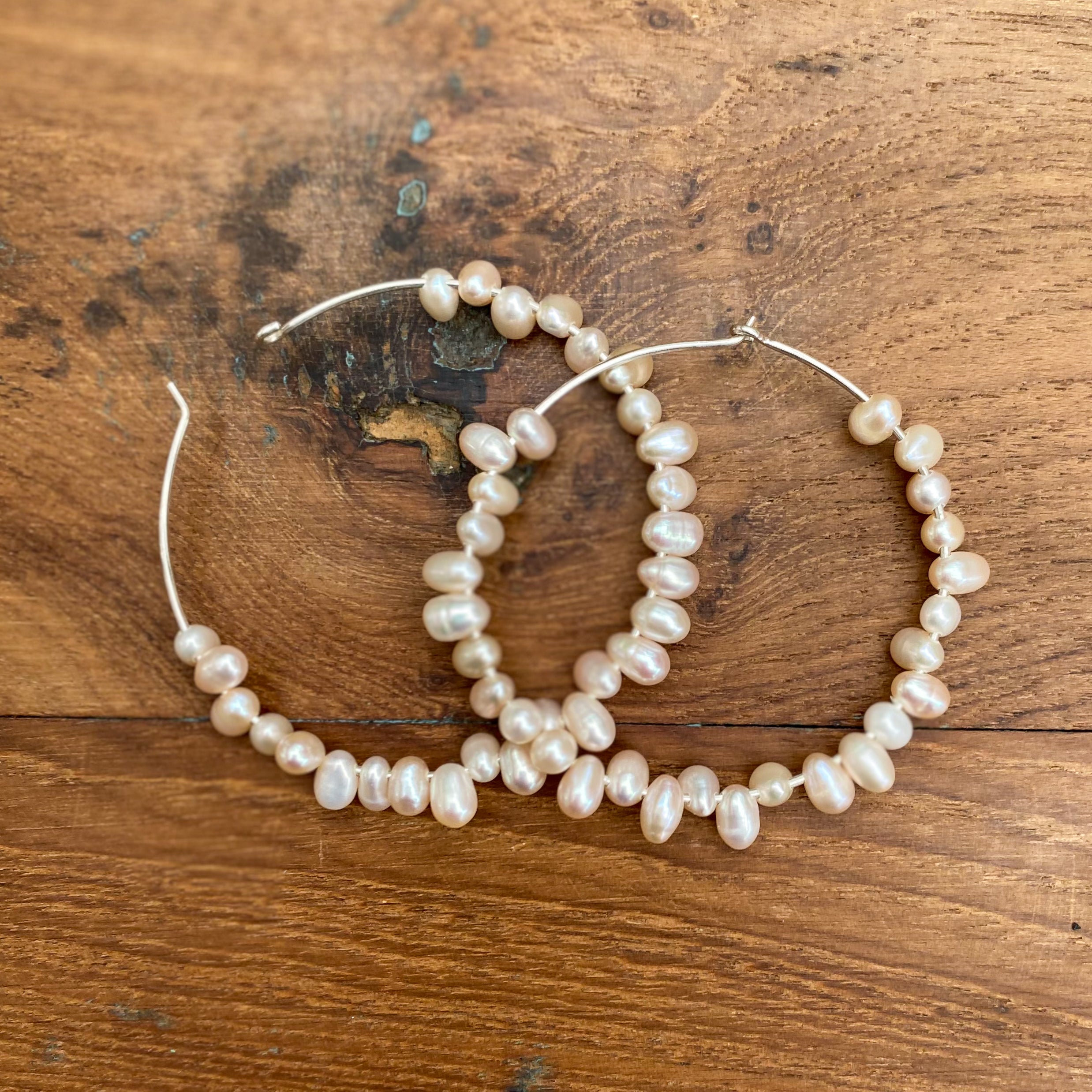Large Pearl Hoops - $99